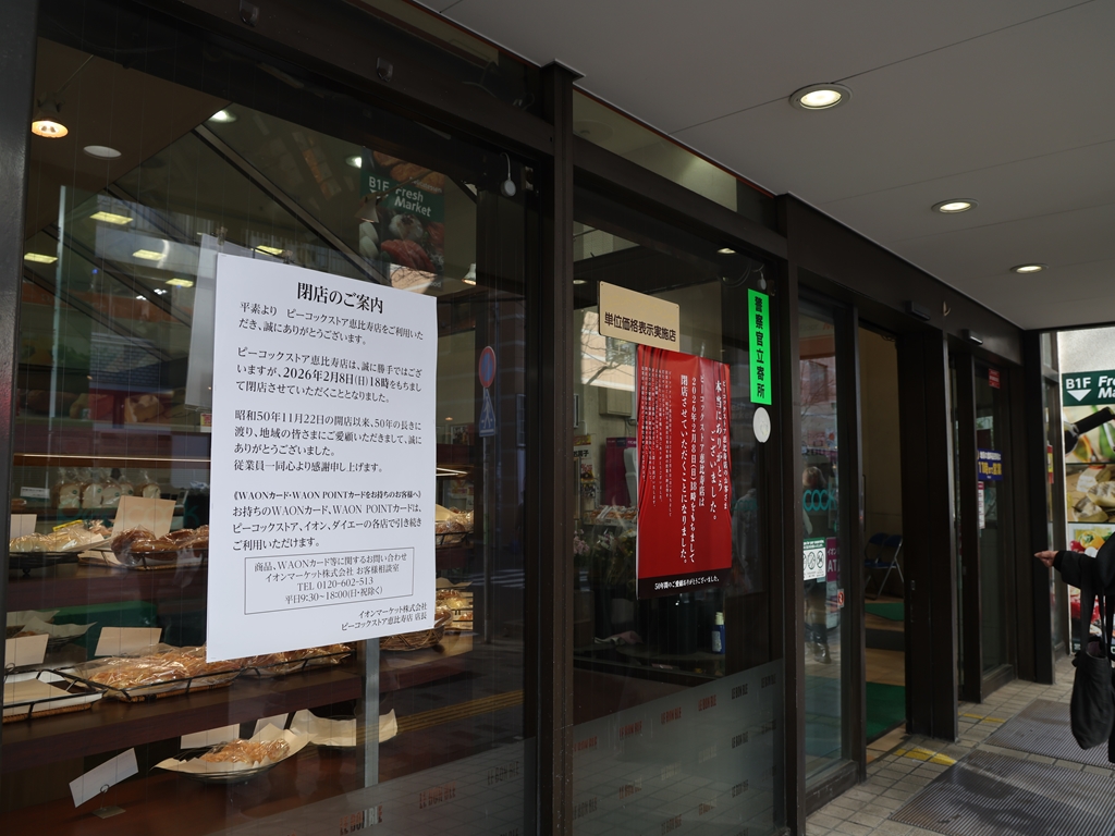 ピーコックストア恵比寿店、2026年2月8日閉店-本庄ビルの旧大丸ピーコック、半世紀の歴史に幕
