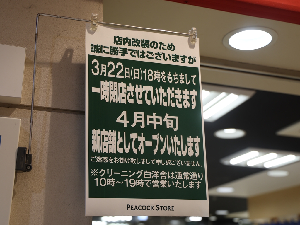 ピーコックストア代官山店閉店の案内。