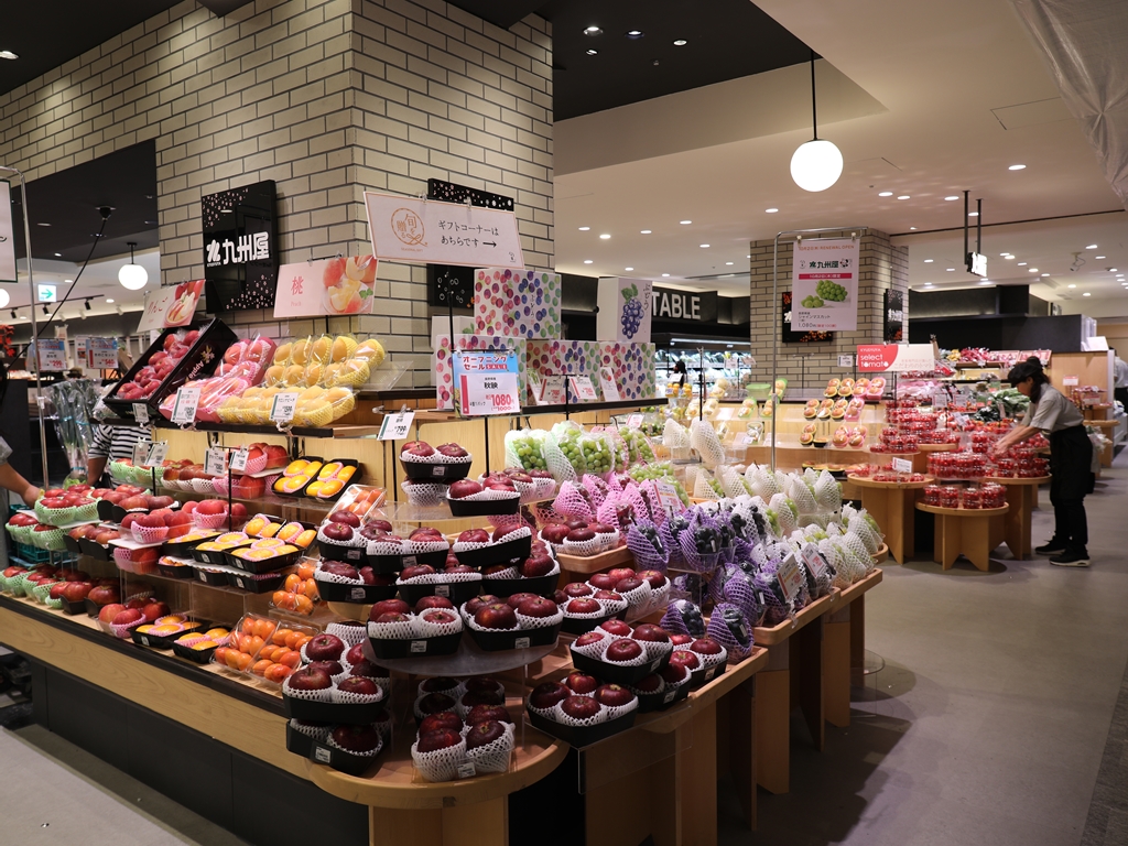 ながの東急百貨店地階食品フロアの全面刷新(リニューアル)は約24年ぶりとなるもの。同館では準備期間として2025年8月27日まで本館5階で「ながの東急百貨店フードショー」の仮設営業をしており、8月28日から9月5日にかけて青果店「九州屋」と高級食品スーパー「北野エース」が先行新装開店していた。
