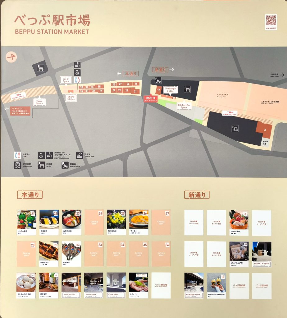 べっぷ駅市場を「べっぷ駅市場・本通り」、そして増築された部分を「べっぷ駅市場・新通り」称して、新たな店舗を誘致する。