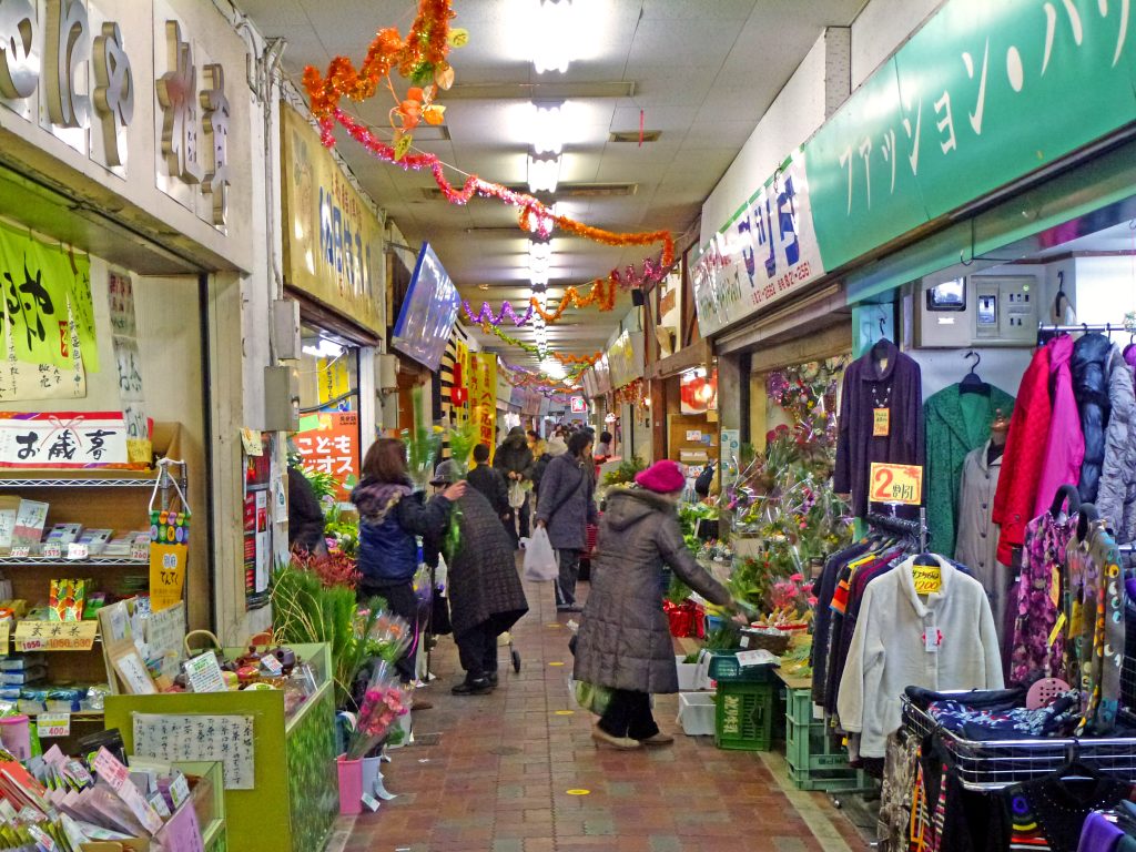駅側の入口にはネオンサインを模した赤い看板が登場。市場内は内外装とも新築されたものの、かつてと同じ「商店街らしい(駅ビル風ではない)狭い街路の両端に店舗が並ぶ形態」となっている。