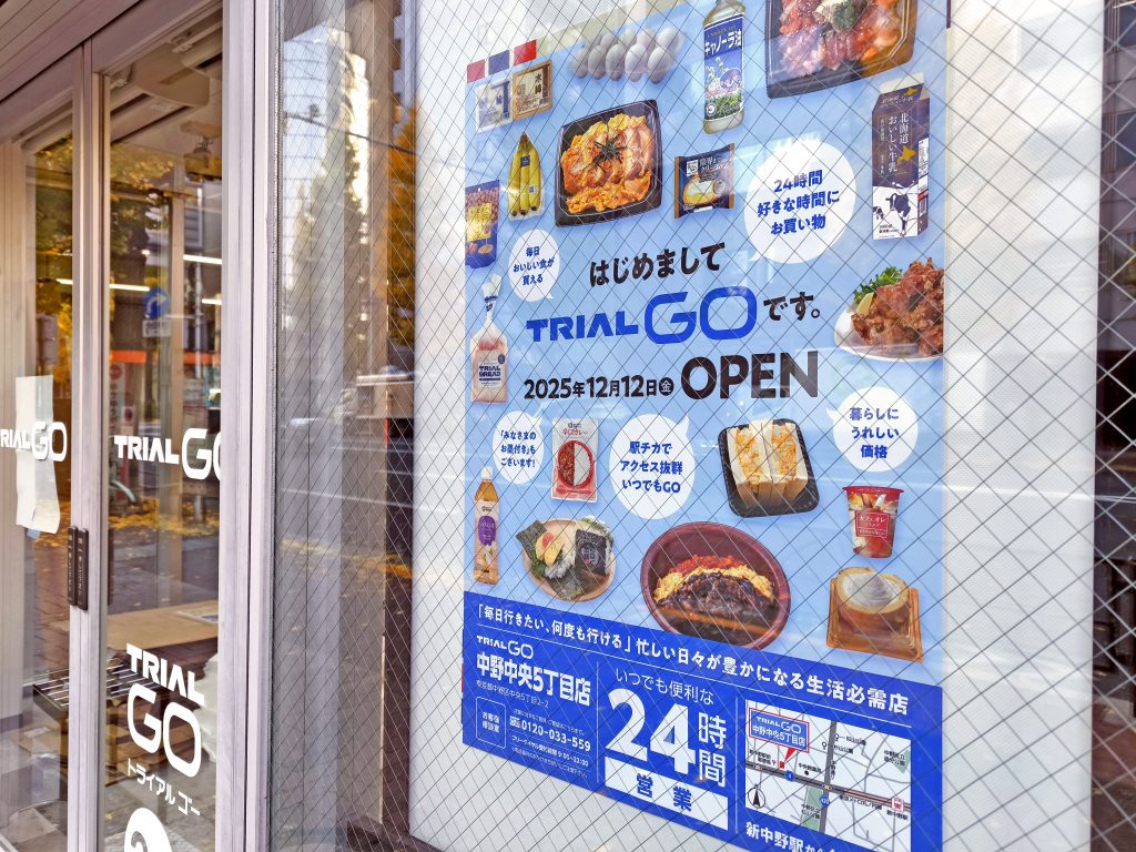 トライアルGO中野中央5丁目店、2025年12月12日開店-東京メトロ沿線初出店、丸ノ内線新中野駅前「まいばすけっと2店」が見える立地に