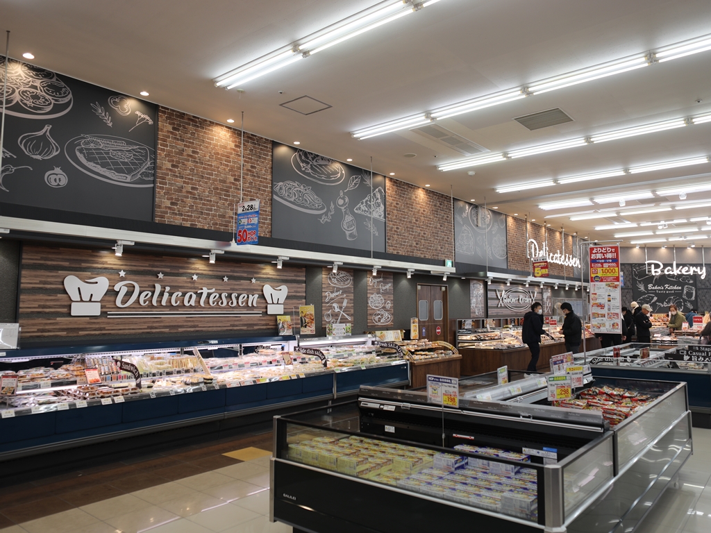 デリカでは愛知県産卵使用「手づくりだし巻」といった東海地方向け独自商品をはじめ、「おにぎり亭」コーナーや洋風DELI、中華、魚惣菜などフルラインナップで展開。インストアベーカリー「ベーカーズキッチン」を備えるなど「地域一番の弁当・丼コーナーをめざす」売場となった。