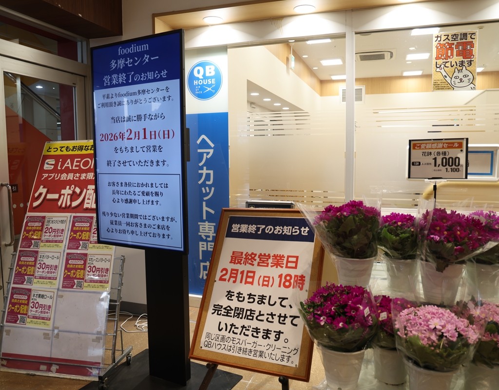 関連記事:ダイエーイオンフードスタイル八王子大和田店、2026年1月11日閉店-忠実屋から50年の歴史に幕、フードスタイル初の完全閉店に