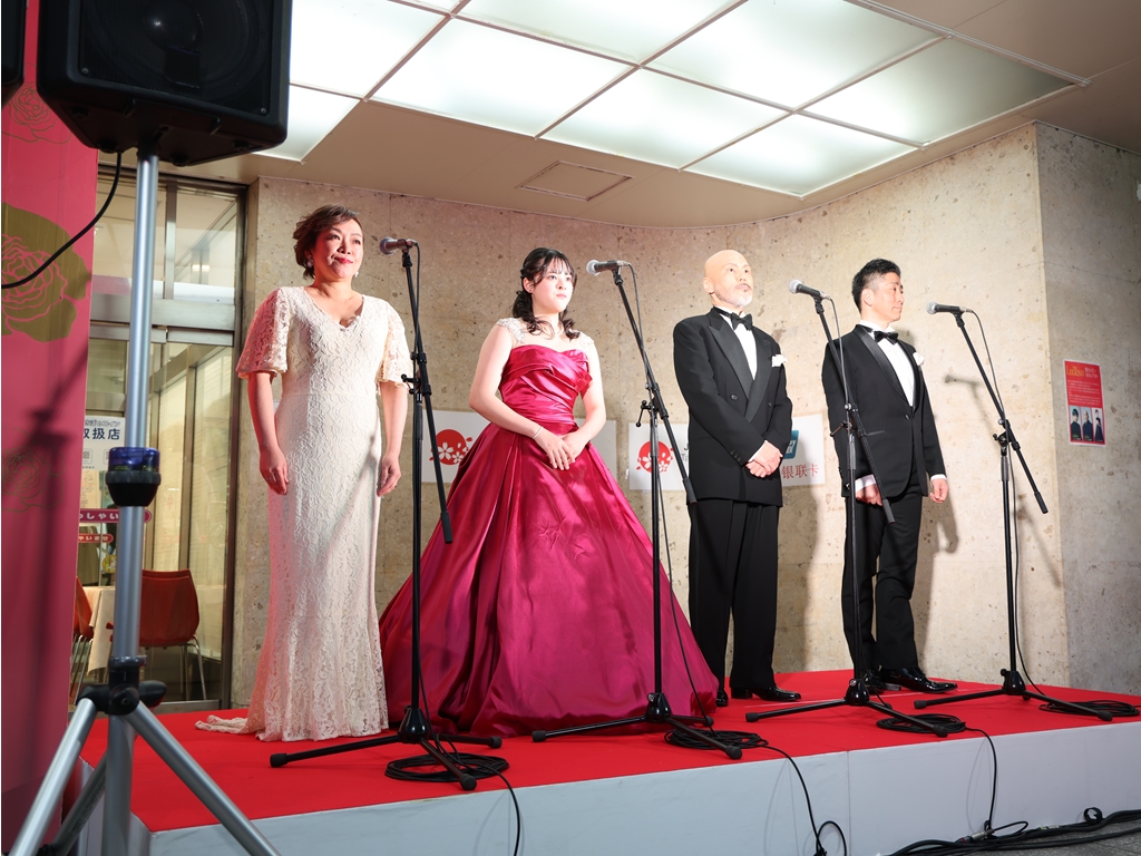 佐世保玉屋正面玄関では午後5時45分より百貨店文化ホールや各種記念催事を通じて縁の深かったオペラユニット「THE LEGEND」を迎えた「閉店セレモニー」を開催。