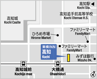 高知県高知市のとさでん交通大橋通電停前に、大手系ビジネスホテル「東横イン高知(東横INN高知)」が2026年2月7日に開業する。