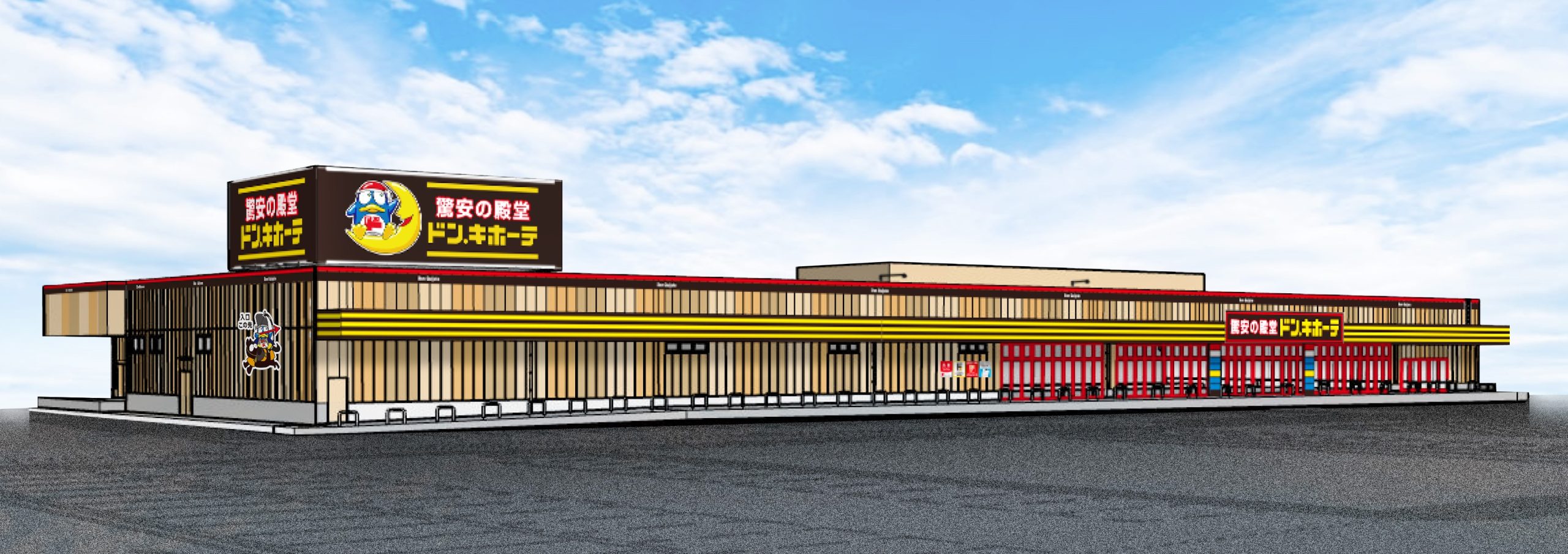 ドンキ屋島店ではコンセプトに「地元に愛され旅人に驚かれるドンキ」を掲げ、源平合戦の舞台となった歴史観光地という立地特性を活かした重厚感ある装飾を採用。ドンキ公式キャラクター「ドンコ」(誕生日:3月3日)をオリジナルデザインで店内各所に展開する。