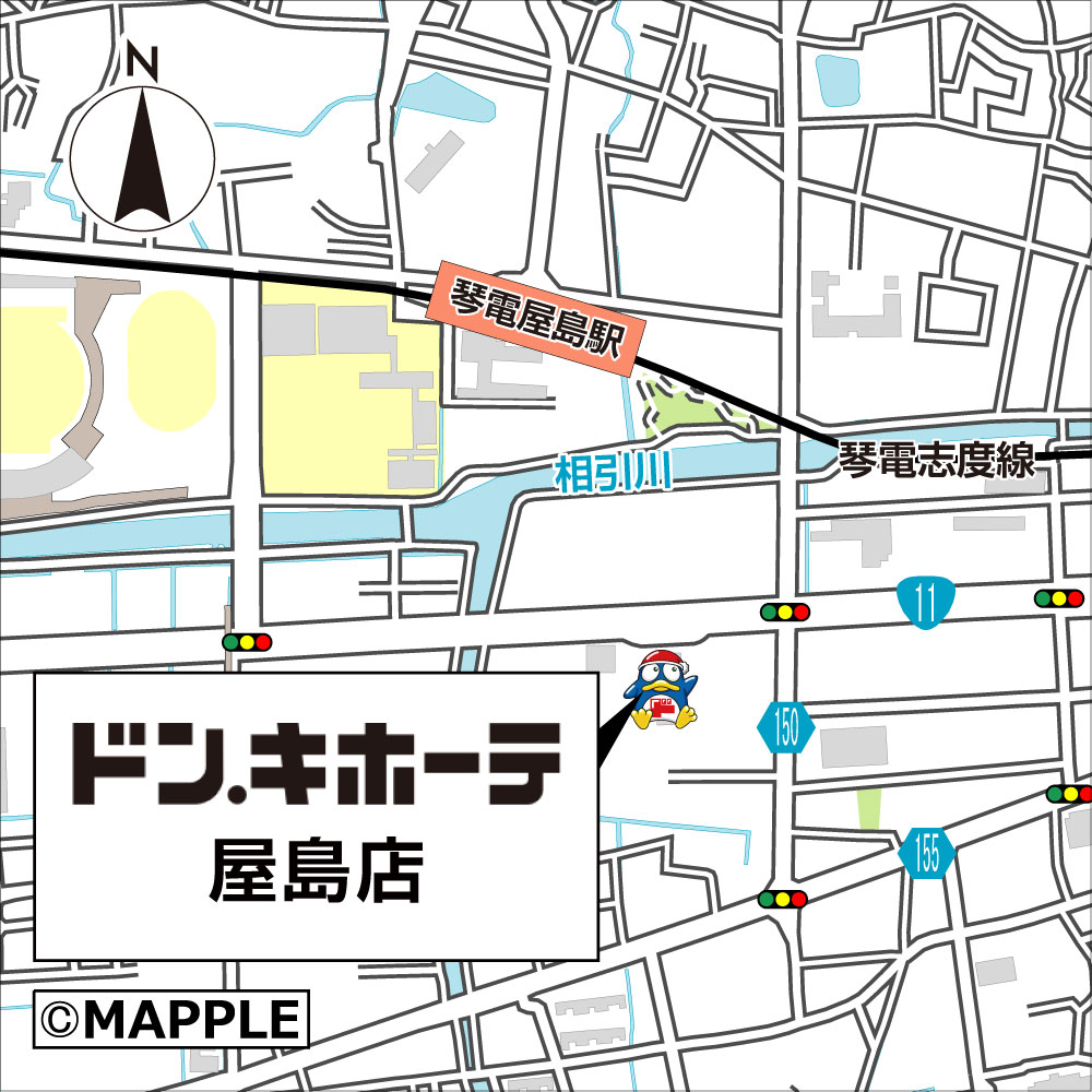 香川県高松市の高松琴平電気鉄道(ことでん)志度線琴電屋島駅近くに、パン・パシフィック・インターナショナルHD(PPIH)系ディスカウントストア「ドン・キホーテ屋島店」が2026年3月3日午前9時に開店する。